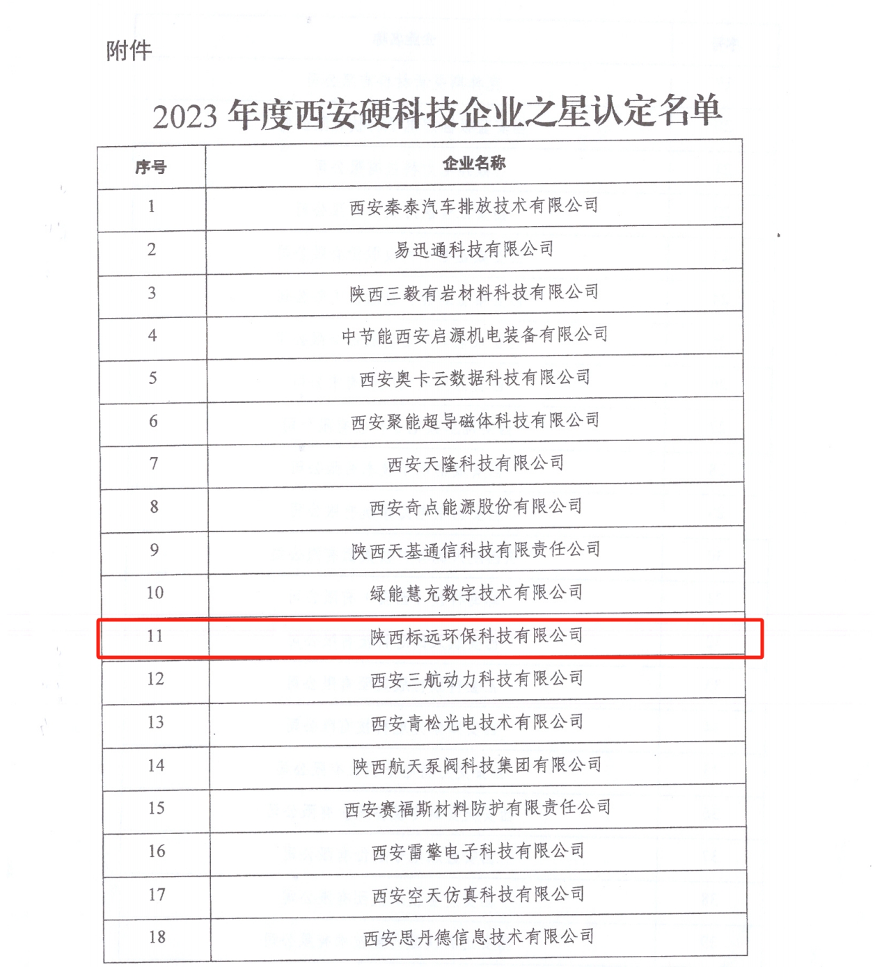 近日,西安市科學(xué)技術(shù)局公示了2023年度硬科技企業(yè)之星認(rèn)定名單,陜西標(biāo)遠(yuǎn)環(huán)??萍加邢薰疚话裆嫌忻?。